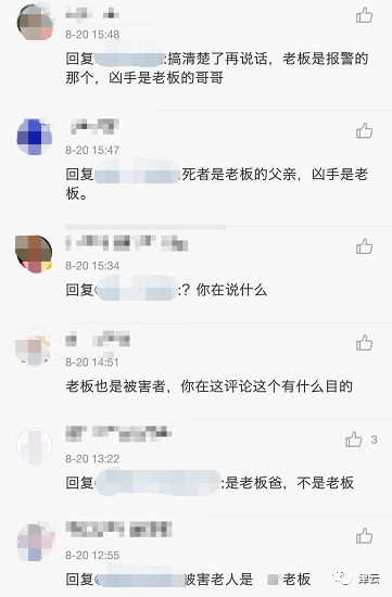 在谈论此案时,一些漳州当地网民错误地将这起命案的死者或者嫌犯这两个身份,“安”在漳州当地一个知名牛肉面馆(火锅店)老板身上,马上有网民纠正称:老板是报警者,死者是老板的爸爸,嫌犯是老板的哥哥。