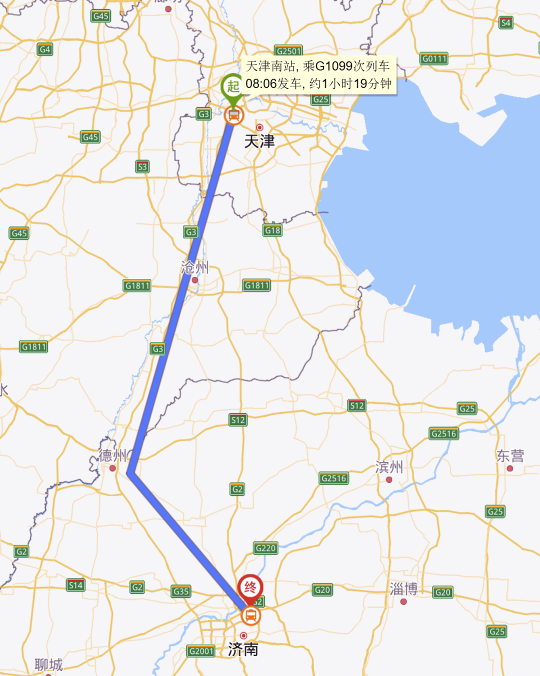 从天津到济南,300多公里