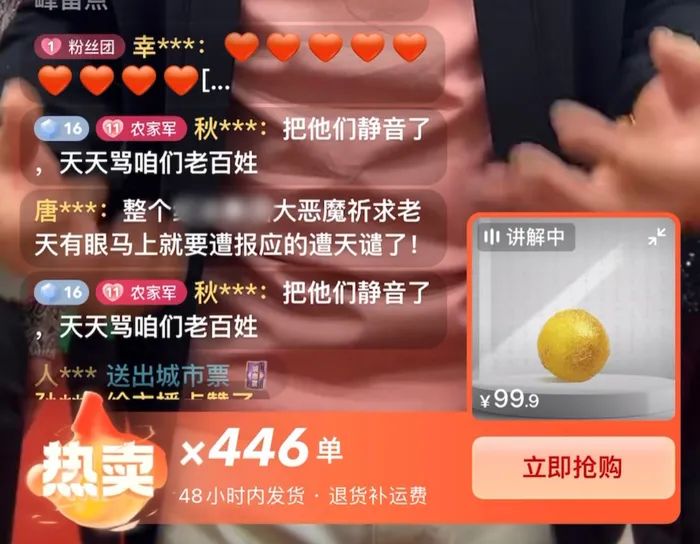 “你看我敢不敢把这些好东西给我的家人们,我再送家人们10粒,家人们抓紧拍,小黄车下单。”“你们这些下等人拍什么拍,这些好东西是给你们用的吗?牛文,你知道你这么做的后果是什么吗……”4月7日,为了争夺一件名为“JDL(音译)”的产品,一场大战正在平台直播间内上演。主导这场直播的主播名为“牛文抗争到底”,粉丝量6.7万,直播间粉丝称他为“牛文”。
