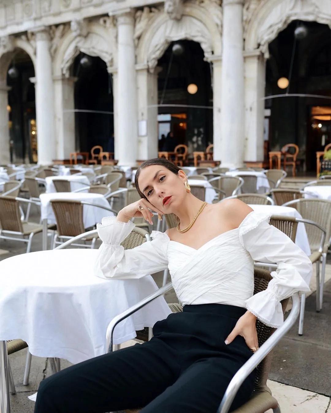 时尚博主 Maria Bernad 不仅自己爱戴各种珍珠饰品,在自己的个人品牌 Lesfleur Studio 上也出了很多珍珠配饰产品。