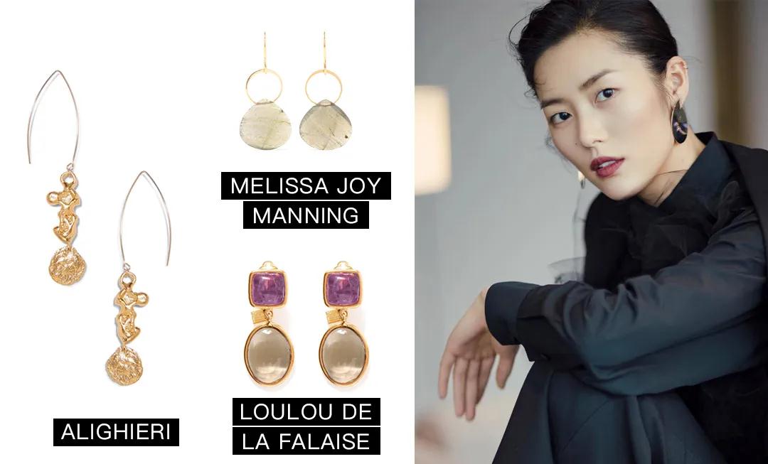 选择异形耳环时最适合搭配造型简单的服装,在简单中出现一个小亮点,就会让人过目难忘。今年的流行色是香芋紫、柠檬黄这些色彩缤纷的颜色,这点同样适用于配饰,Amiee Song在这套服装中就搭配了彩色的几何形耳饰,颜色与服装色彩相互呼应。