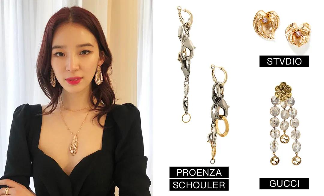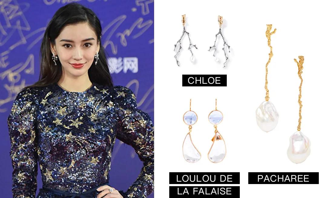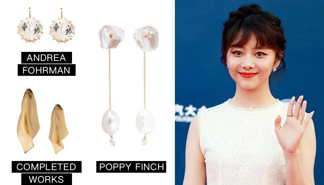比如baby和热巴都会选择用下摆宽的耳饰来避免让下巴显得更尖,像是吊坠形、水滴形、树叶形都比较适合。
