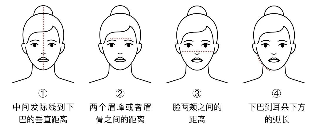 如果你不确定自己的脸型,试试自拍一张正面照通过测量下面这4个数据进行简单分辨。