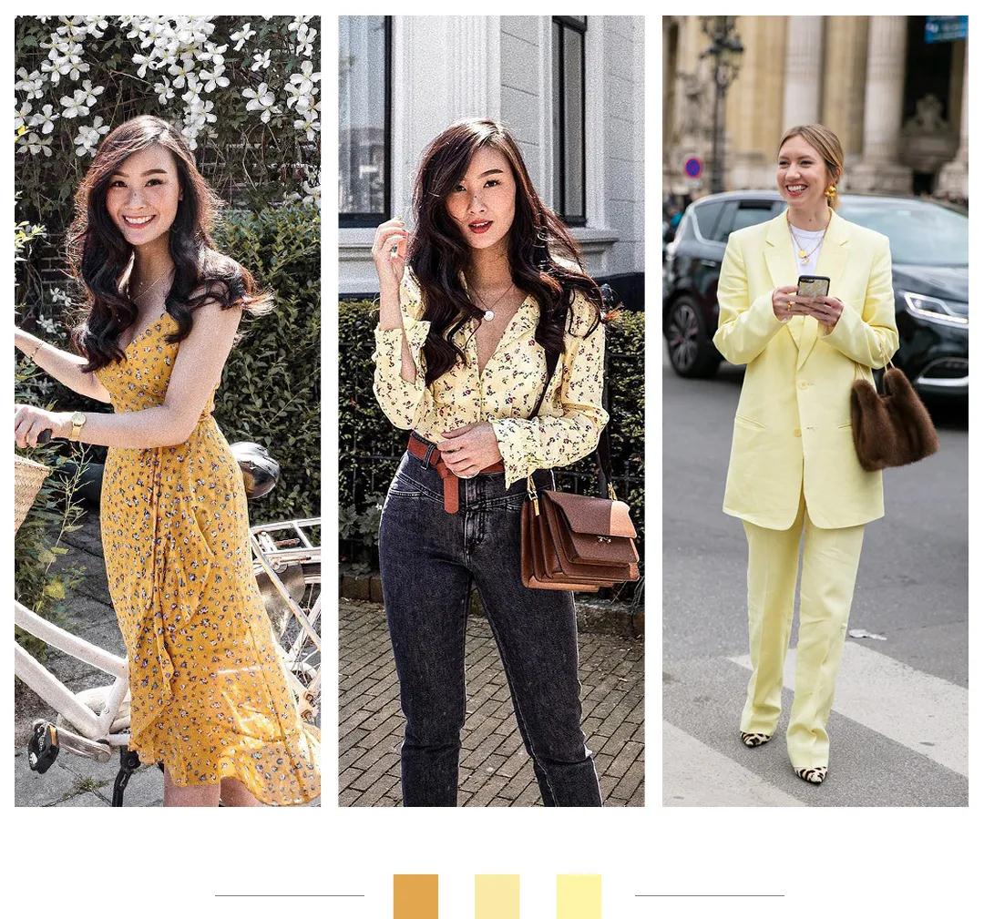 黄色系其实是对黄皮最友好的色系之一了。暖黄皮的女性可以选比自己肤色略深一点的姜黄色、低饱和度的鹅黄色。如果你是白皙的冷黄皮,冷调的明黄色更适合你。