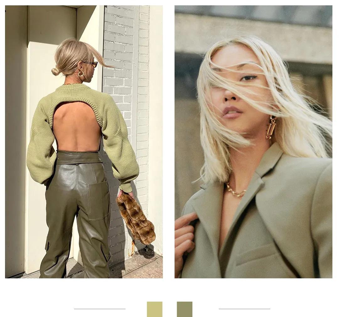 这两年各种深深浅浅的绿真的很火,庆幸的是,冷、暖调的黄皮都能在这个区间找到适合自己的绿色。