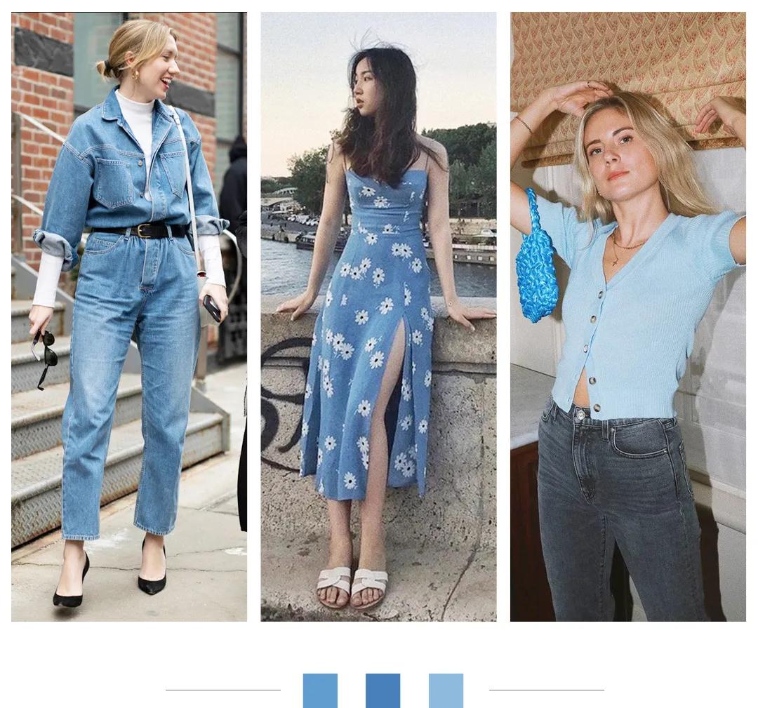 黄皮们穿宝蓝色、深蓝色可能效果不太好,更浅一点的褪色丹宁蓝是更好的选择。