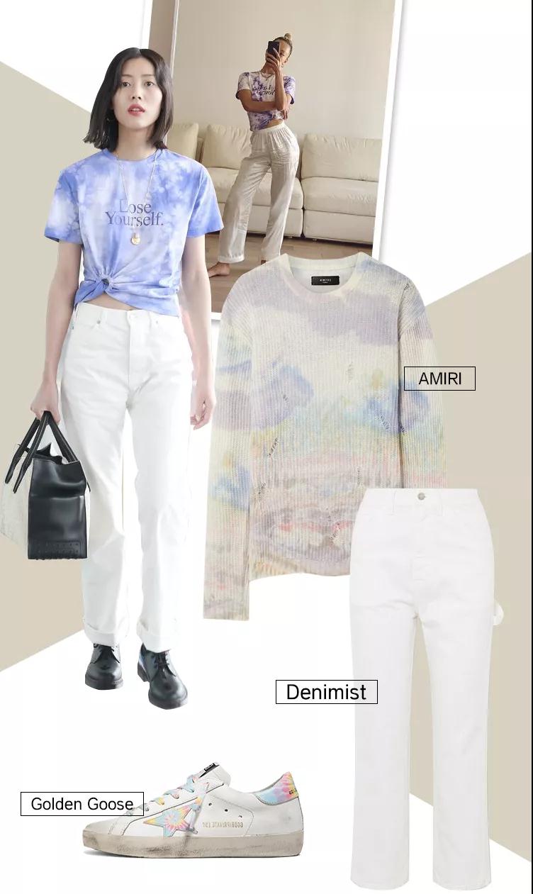 黄皮美人刘雯和Vanessa Hong都穿过浅紫色的扎染T恤搭配白色下装,黄皮女孩们可以模仿一下类似的造型。