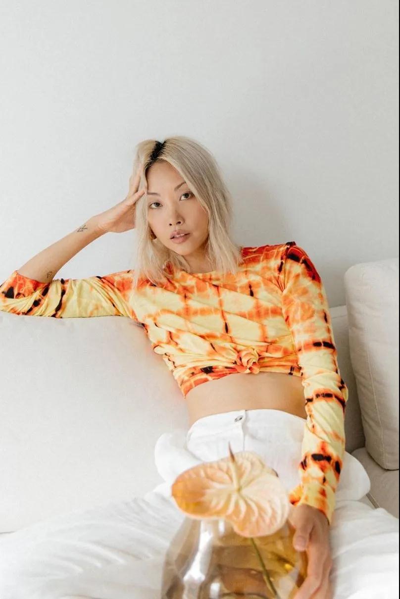 黄皮女孩在挑选有图案的衣服的时候要避免过于有规律的图案。Vanessa Hong爱穿的扎染图案就是很好的选择。扎染图案随机性大,而且看起来年轻有活力。
