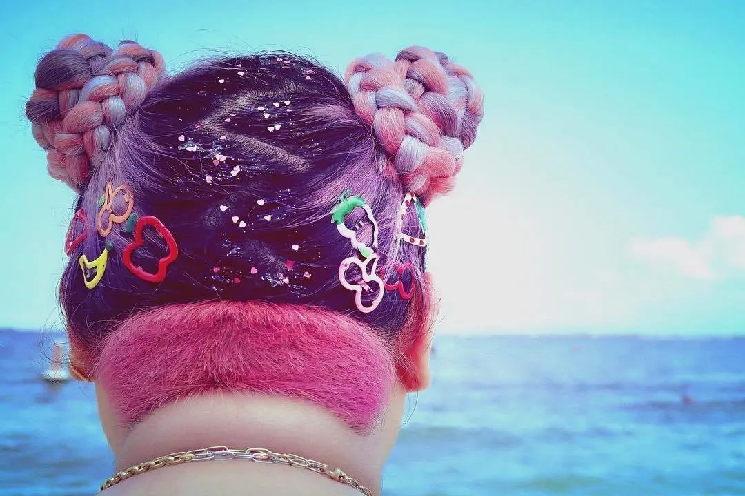 她极为注重细节,甚至会随身带着发片、首饰、配饰,换套衣服变套Look,没有重样的;甚至连美甲都延续绚烂可爱的风格,真的是武装到指尖的精致女孩: