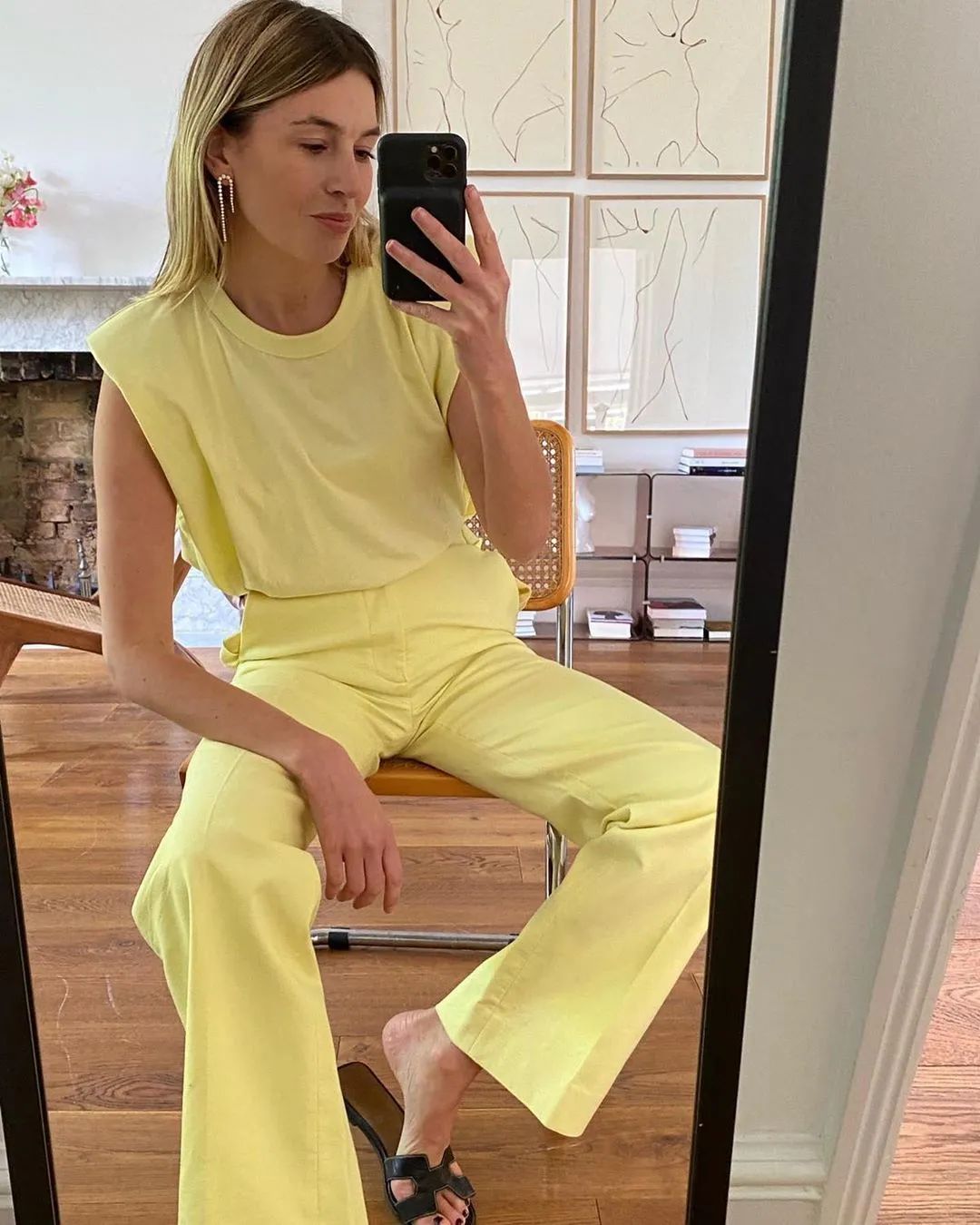 除了常见的黑白棕外,品牌还和时尚博主Camille Charriere出了一个限定色,恬静的鹅黄色,好养眼。