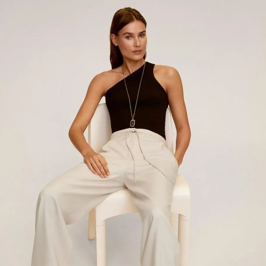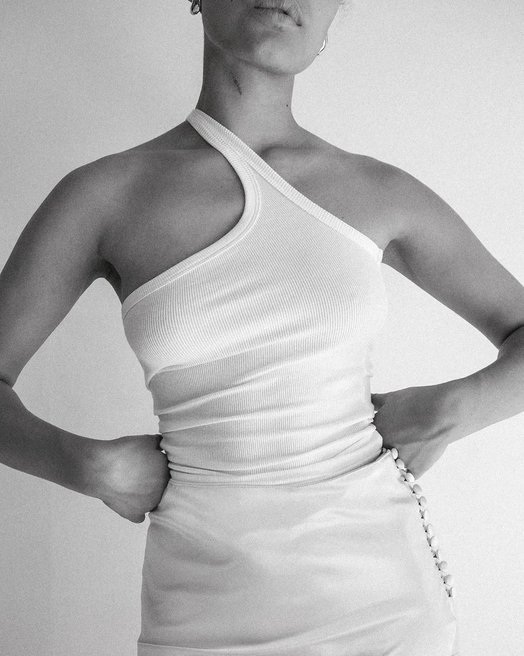 最常见的单肩不对称背心,小小的不同,时髦度就蹭蹭往上涨。这件是来自博主品牌The Line by K,单价基本在一千元以内。