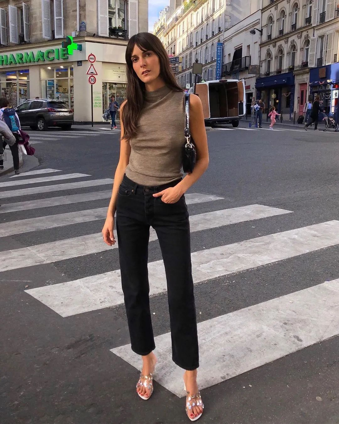 法国博主Leia Sfez这件Vince的,搭配直筒铅笔裤+高跟凉拖,有种90年代的复古。