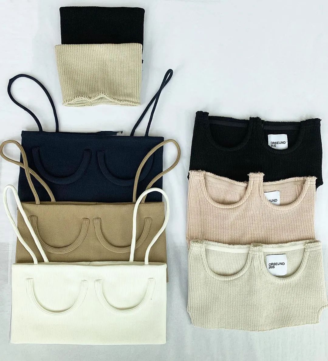 不过因为针织款材质太过轻薄贴身,内衣变得很难选。国外博主有时候真空上阵,当然也可以选择同色的抹胸式内衣或者贴胸贴。