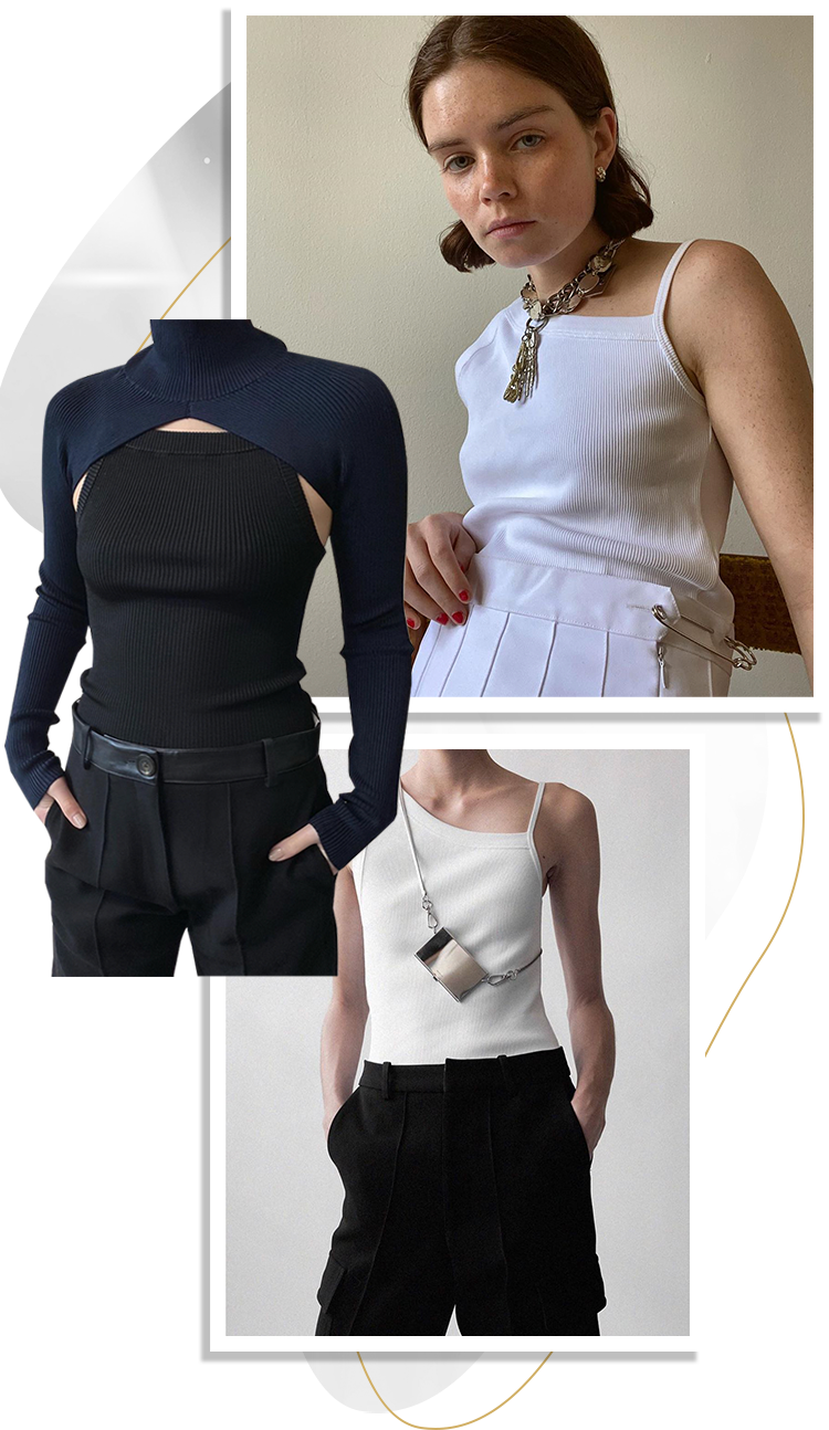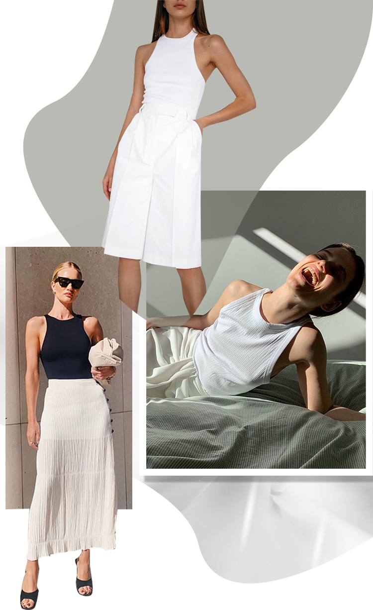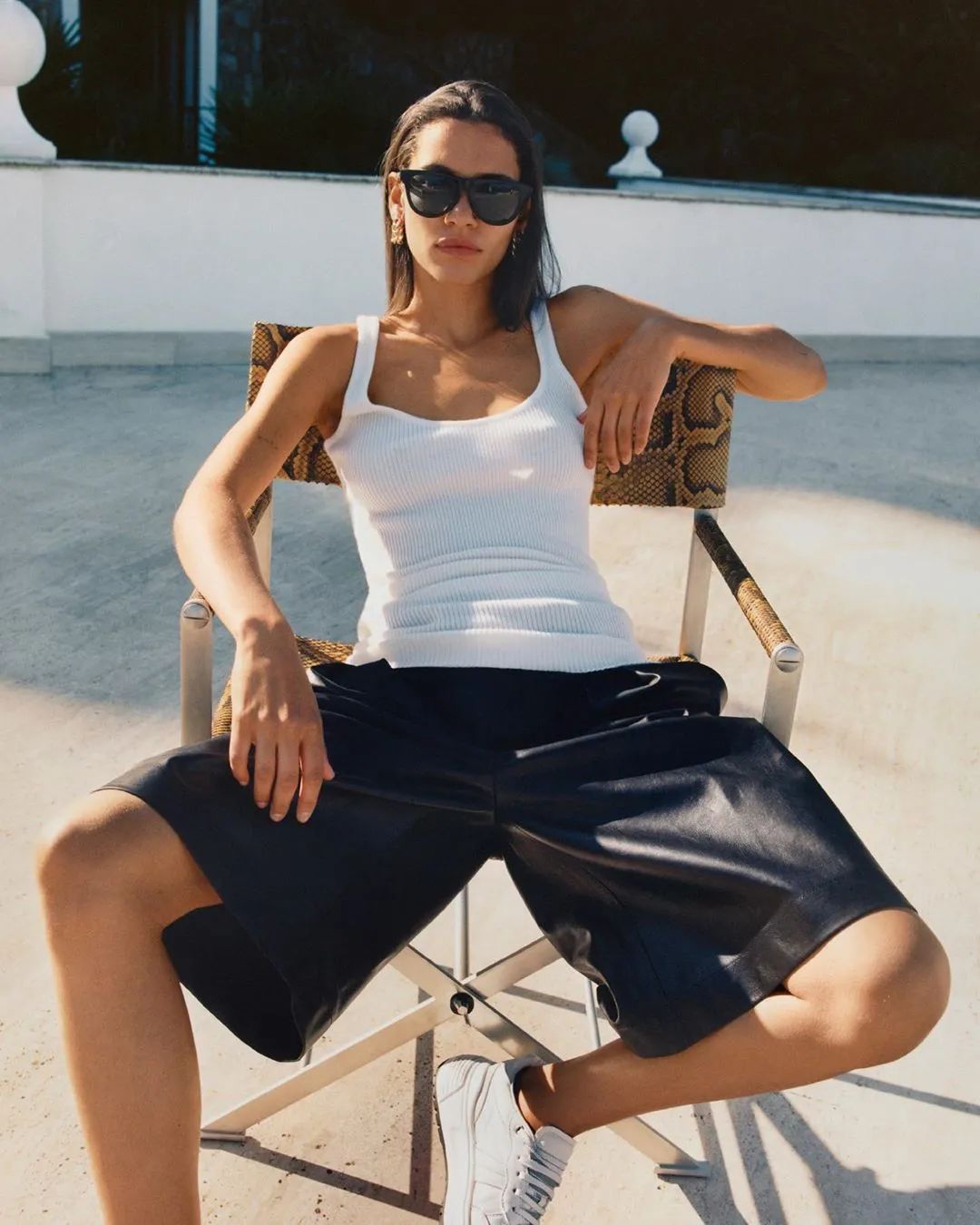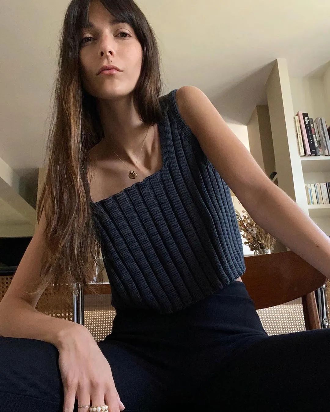 罗纹也是今年夏天最受欢迎的元素,简简单单的背心,因为罗纹这个细节的加持,变得更有时装感。