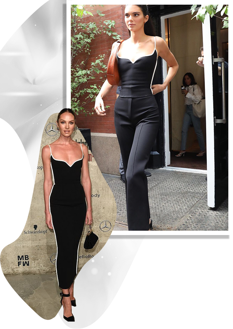 还有新西兰品牌Paris Georgia,主打90年代风的复古设计。我一开始也是因为 Candice Swanepoel、Kendall Jenner这两件穿搭才认识这个品牌的。