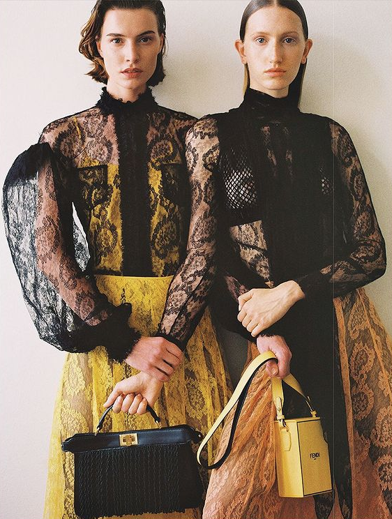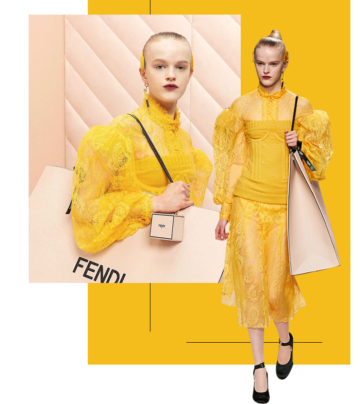 Fendi的蕾丝裙,又给明黄色加入了一些若隐若现的性感。