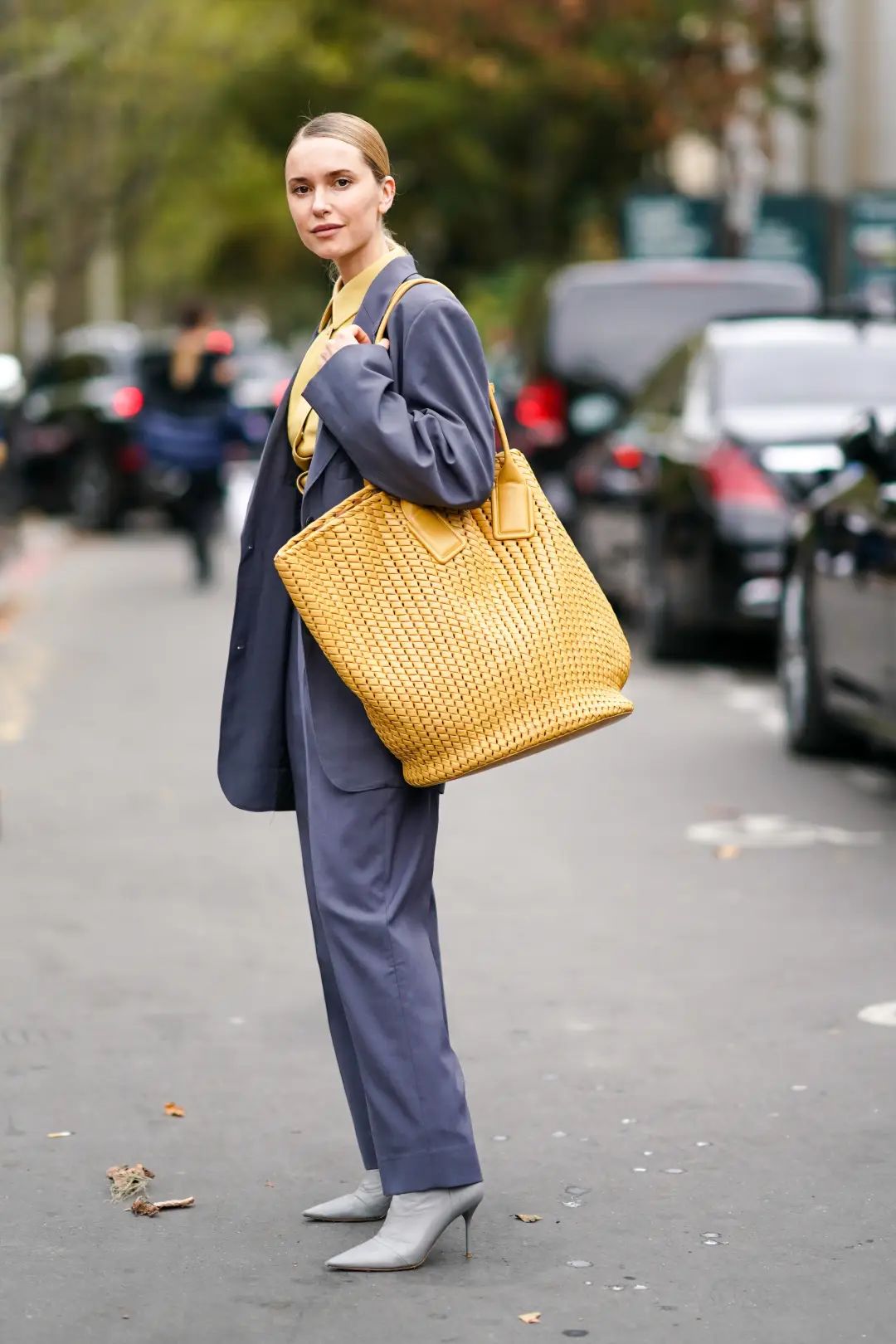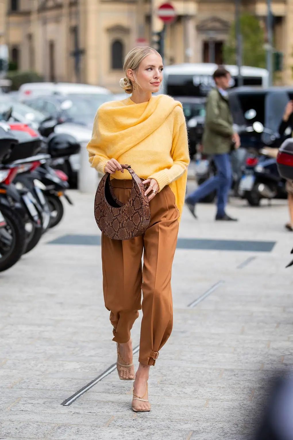 街拍里还经常会出现丝绒的黄色单品,看起来毛茸茸,更添一份温暖和俏皮。