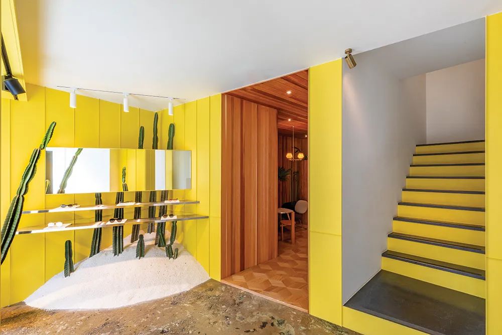 当明黄色遇上钢筋水泥,高级感和生动油然而生,很多大牌的店铺都用到这样的设计。
