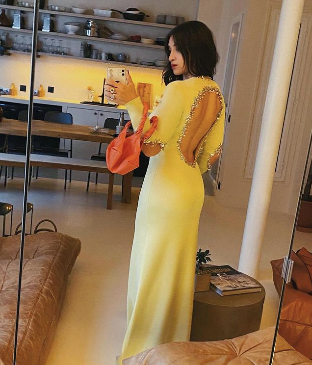 还有一些明黄色单品,会选择用其他颜色来做分割,让黄色显得没那么突兀,也比较适合亚洲女生。