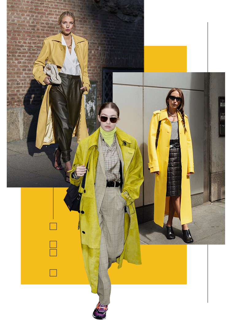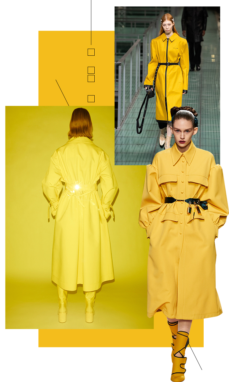 今年的大牌就不约而同地推出了很多明黄色的风衣,帅气又很温暖。