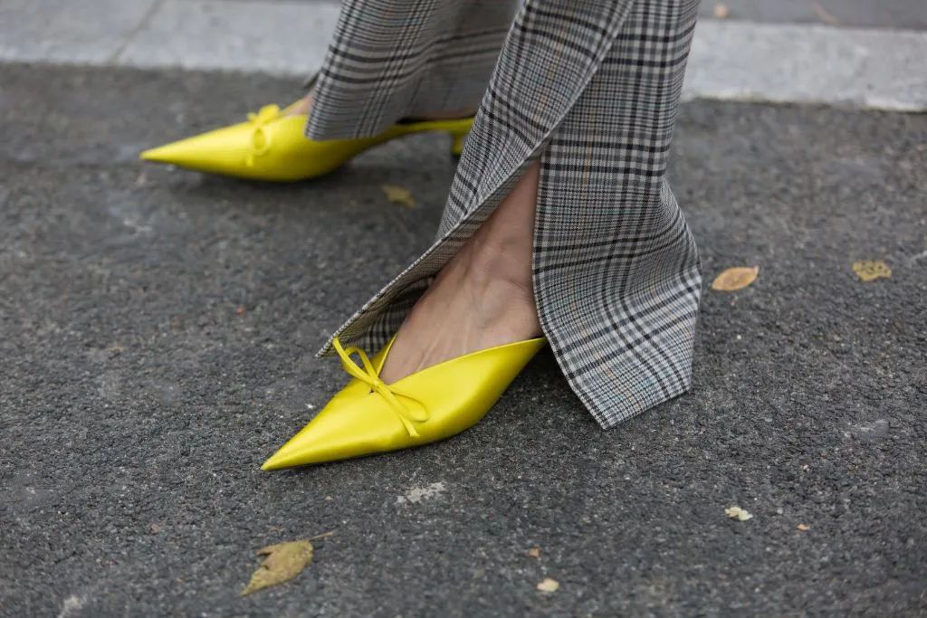 一双亮黄色的鞋子也是不错的选择,在日常的穿着中非常好实现。