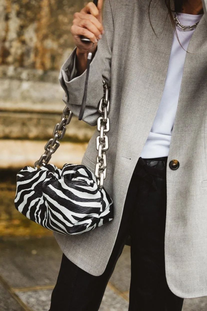 因此用在搭配里时,像印花、荧光色、动物纹这些特别跳脱的单品都可以全身灰色来驾驭。