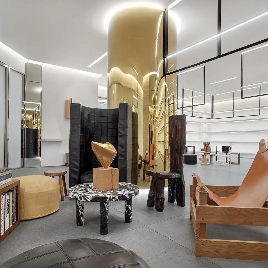 巴黎的Celine新店,也选择用黄色进行点缀,与华丽的金属色相得益彰。