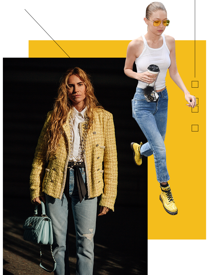 实在不想费心,可以拿出衣橱里的牛仔裤。黄色和带点灰色调的蓝色其实非常合拍,怎么穿都好看。