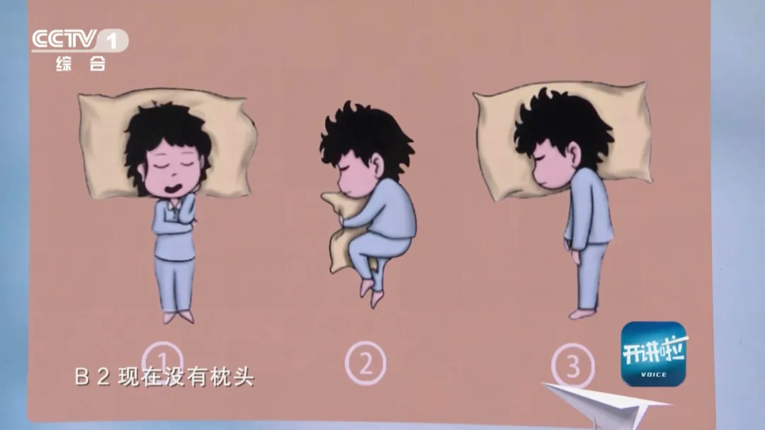 厉彦虎列举了三种常见的睡觉姿势,趴着、侧着、仰卧。