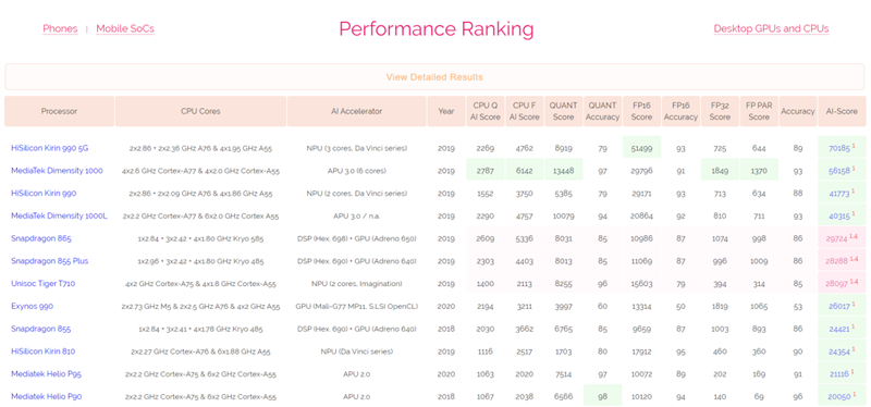 毫无疑问,根据权威的AI Benchmark测试结果排名榜单,荣耀30S所搭载麒麟820的分数仅次于当前榜首的麒麟990 5G,高于联发科旗舰芯天玑1000,远远高于其它阵营的顶级旗舰芯片。