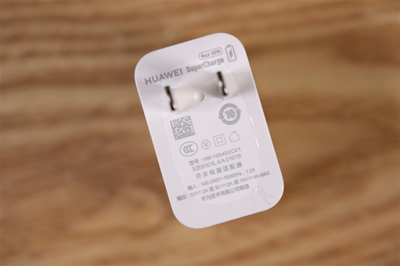 电源适配器特写,华为MatePad Pro 5G支持40W快充,可以实现快速满电。