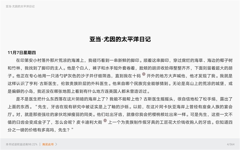 现在,华为进一步洞察用户需求,对平行视界进行了优化升级,支持分屏内的全屏显示。在华为MatePad Pro 5G上看感兴趣的电子书时,可以进入阅读类APP挑选,屏幕左边选择页面,屏幕右边是挑选好的电子书,当你点击想要读的电子书时,可全屏显示,可以说是相当贴心。