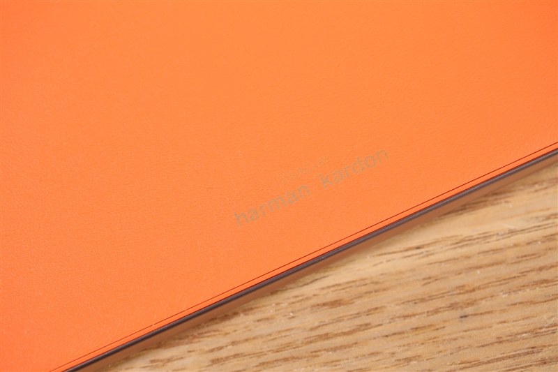 后盖上的一行小字,表明其声效方面与哈曼卡顿的合作。