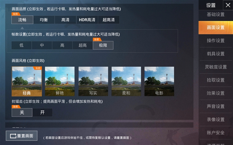 《和平精英》是目前市面上最火爆的移动端射击游戏,其对于帧率有着较高的要求。我们使用HDR高清画质,开启60帧率模式进行游戏。