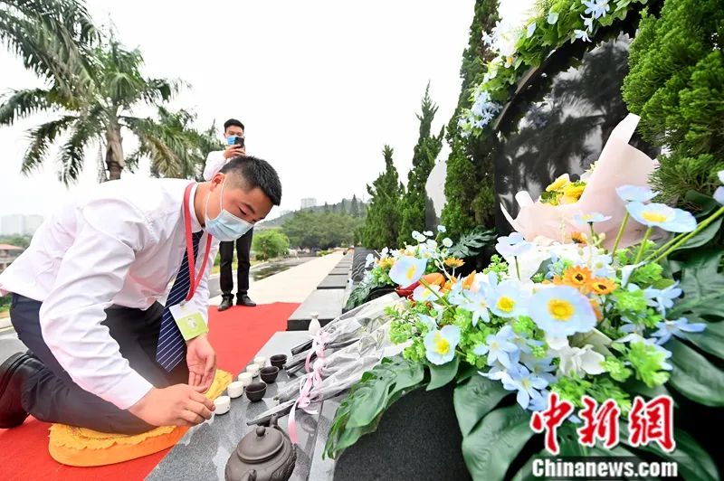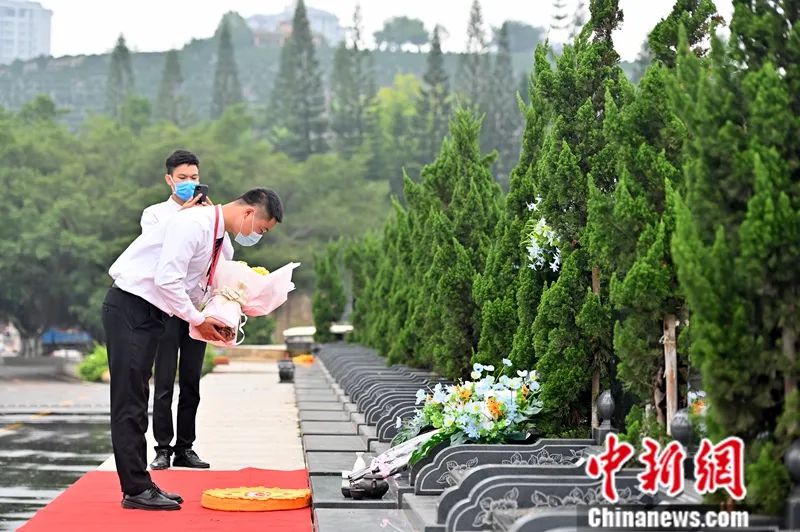 清洁墓位、默哀、鞠躬、献上鲜花......3月26日,在广西南宁市青龙岗长安墓园(以下简称“长安墓园”),“95后”生命礼仪师李鑫和赵从浩一起进行代客祭扫服务。