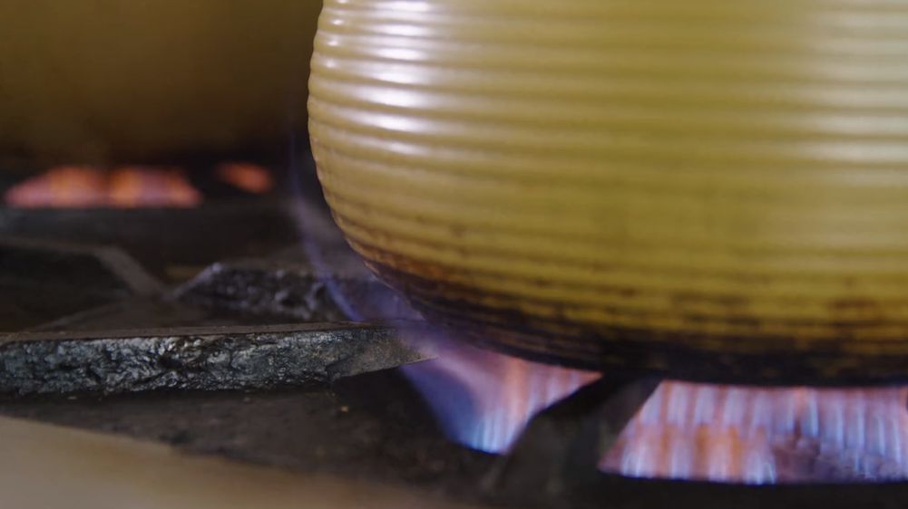 把搓成手指粗细的糯米条掰成小块投入汤锅中