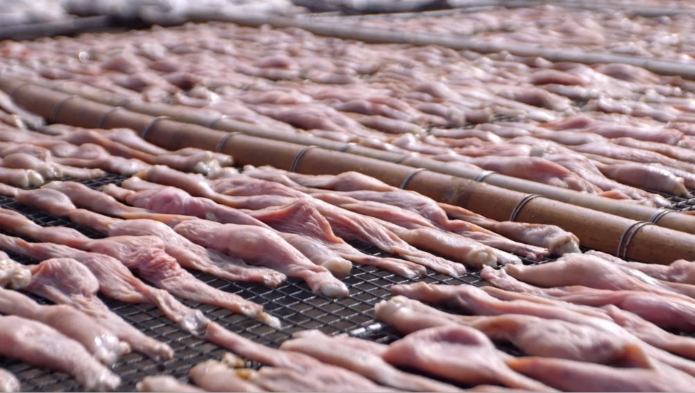 用鲜肉、腊肉、虾干与萝卜丝等制成馅料