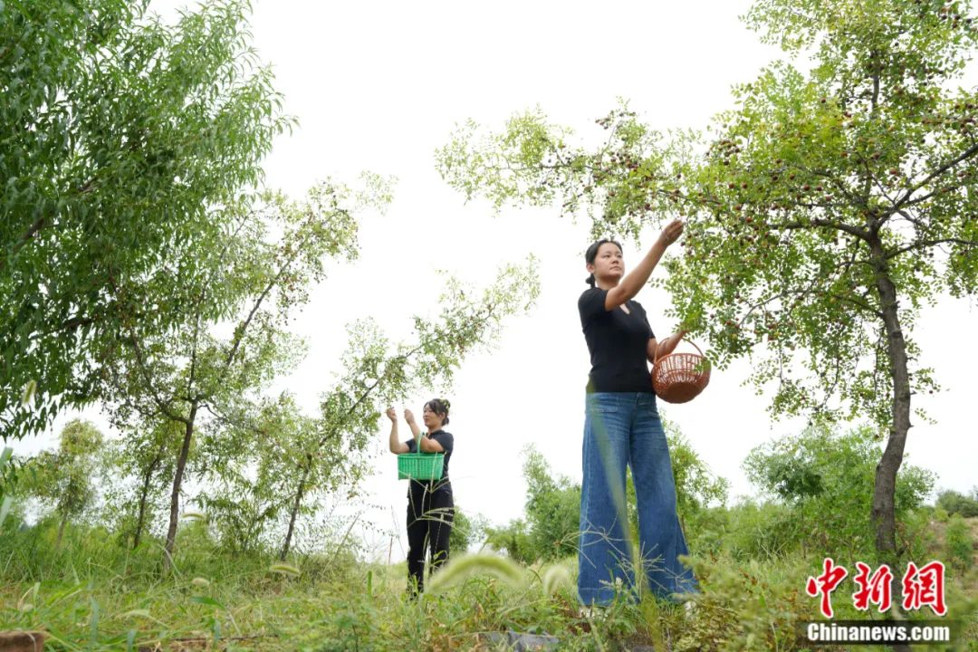 2025年9月4日,在河北省邢台市内丘县樊交台酸枣种植基地,村民在采摘酸枣。 刘继东 摄
