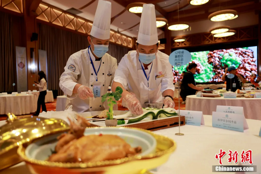 2025年9月24日,厨师在内丘县第三届药膳大赛上制作菜品。刘继东 摄