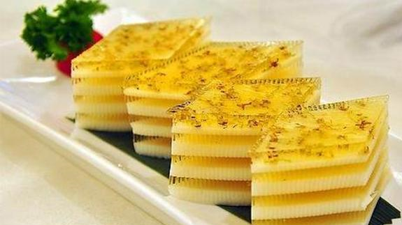 桂花糕由糯米粉、糖、蜜桂花组成,虽然材料很简单,但做出的糕点却满足了一代代人们的胃。