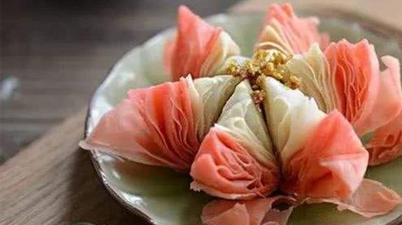 荷花酥,“出淤泥而不染”是人们对荷花高雅洁丽品质的赞誉,用油酥面制成的荷花酥。形似荷花,酥层清晰,食之酥松香甜,别有风味,看着就美的像一幅画,吃起来味道也不俗,是网友公认“最好吃”的糕点。