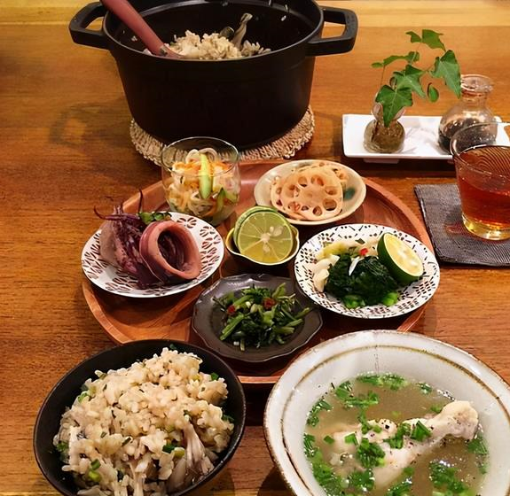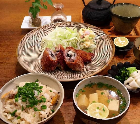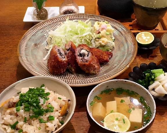 日本家庭的午餐简单又营养,最爱吃的当然是日本料理。日本料理起源于日本列岛,逐渐发展成为独具日本特色的菜肴。午饭要求色自然、味鲜美、形多样、器精良,而且材料和调理法重视季节感。当提到日本料理时,许多人会联想到寿司、生鱼片,或是摆设非常精致,有如艺术的怀石料理。然而对许多日本家庭来说,日本料理是日常的传统饮食。