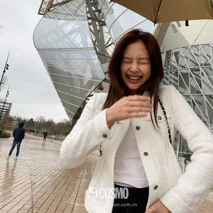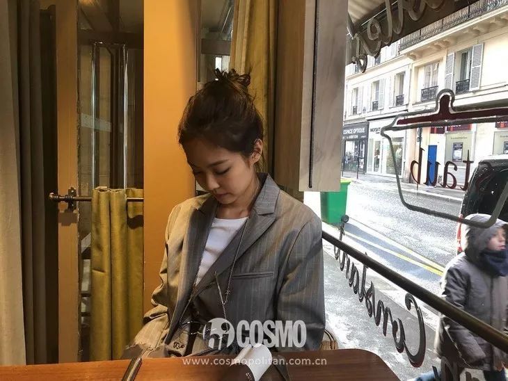 在看秀之前,Jennie就在Ins上晒了两组私服,这套西装造型蛮知性少女的感觉。灰色格纹内搭白色Tee,清新雅致。