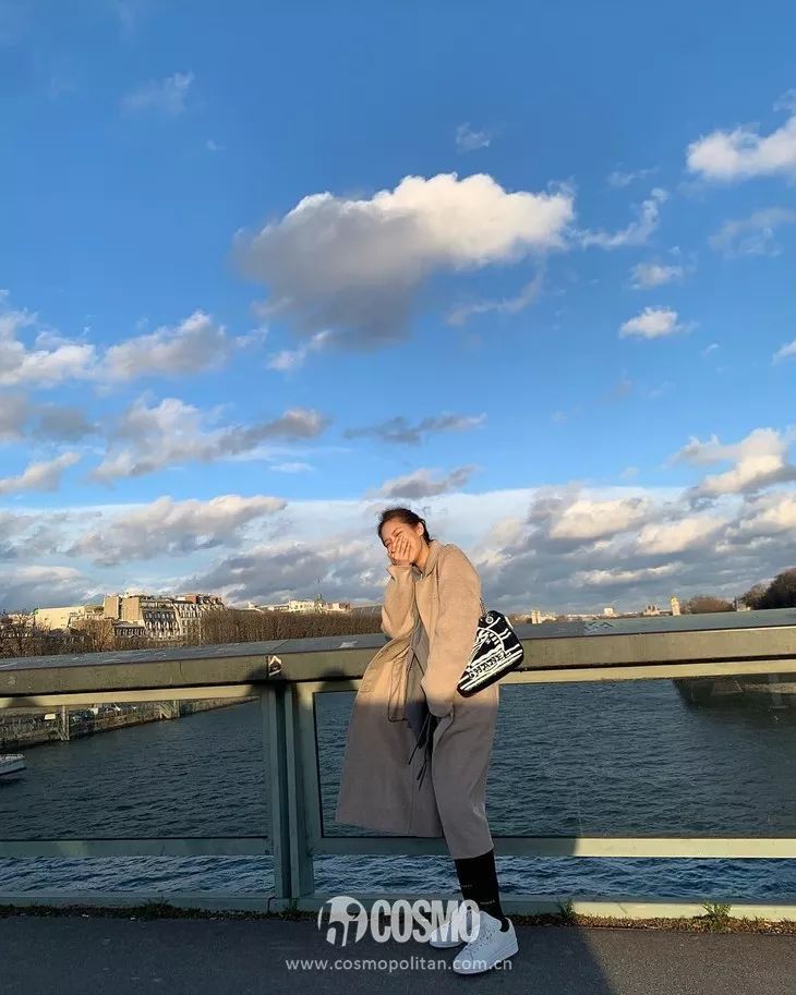 灰色西装外面套上一件米色大衣,就是最温柔的少女Jennie。叠穿也正好适合现在的早春季节,但要注意颜色的搭配协调度。
