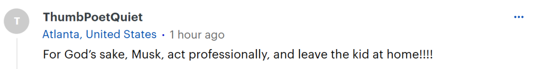 本来,爸爸一边工作一边带娃,是挺多人会点赞的事儿。但到了一直很戏精的马斯克这里,不少人觉得马斯克把小X当成了立“宠娃人设”的道具↓