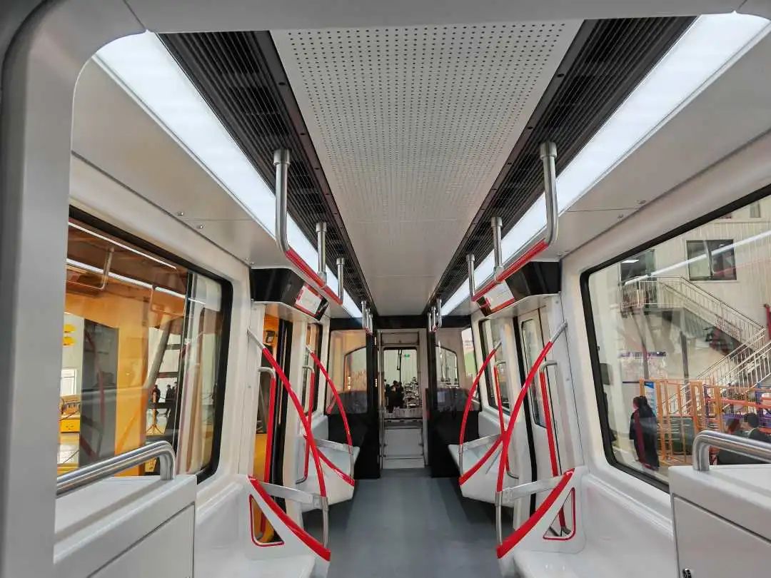 图为磁浮空轨车辆“兴国号”车厢内部