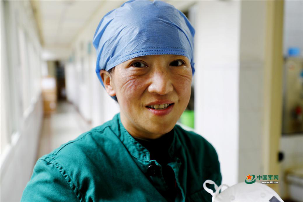 经过从死神手中“抢人”的艰辛与惊心动魄之后,中部战区总医院感染科57岁的江晓静主任,压痕累累的脸上露出开心的笑容。王皓宇 摄