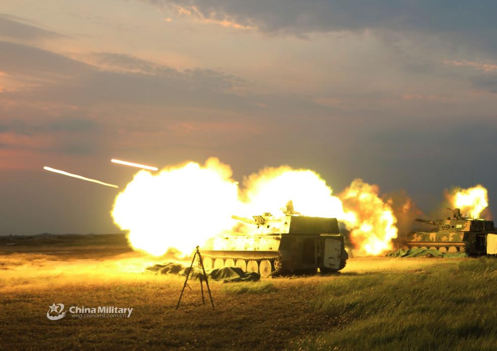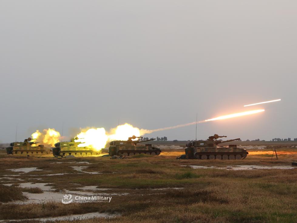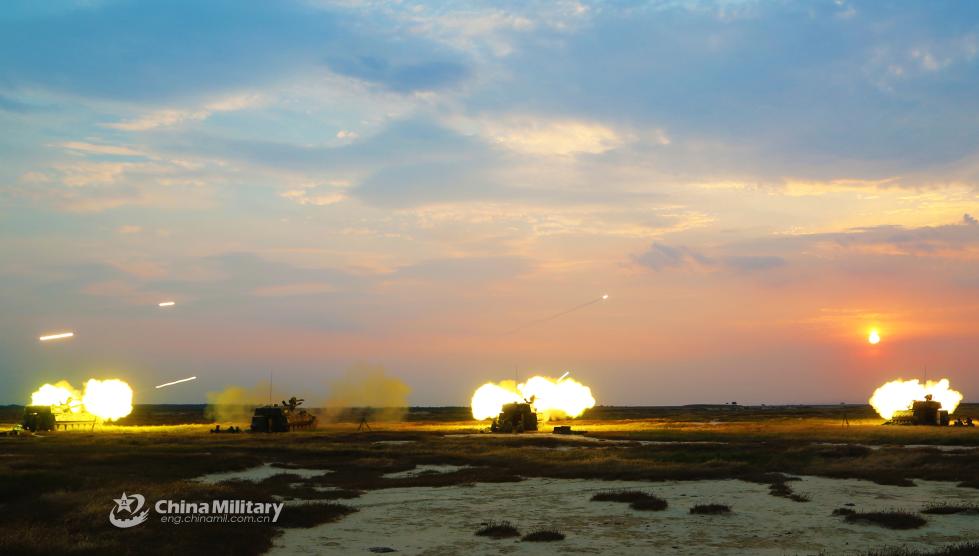 2018年9月11日,中国人民解放军第79集团军下属联合旅的自行火炮系统,在全天候实弹训练演习中对模拟目标射击。