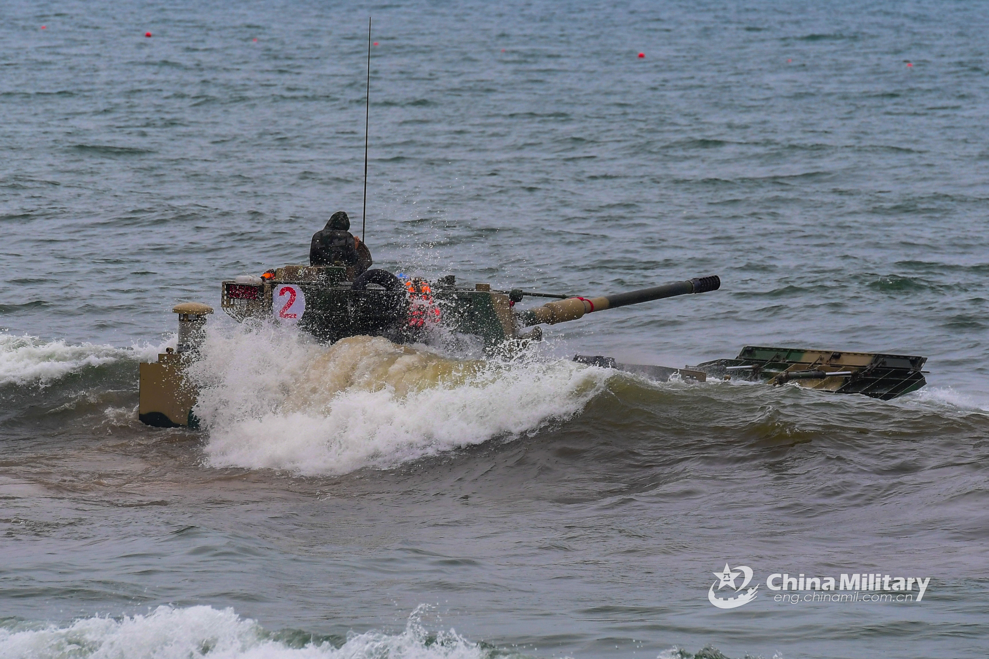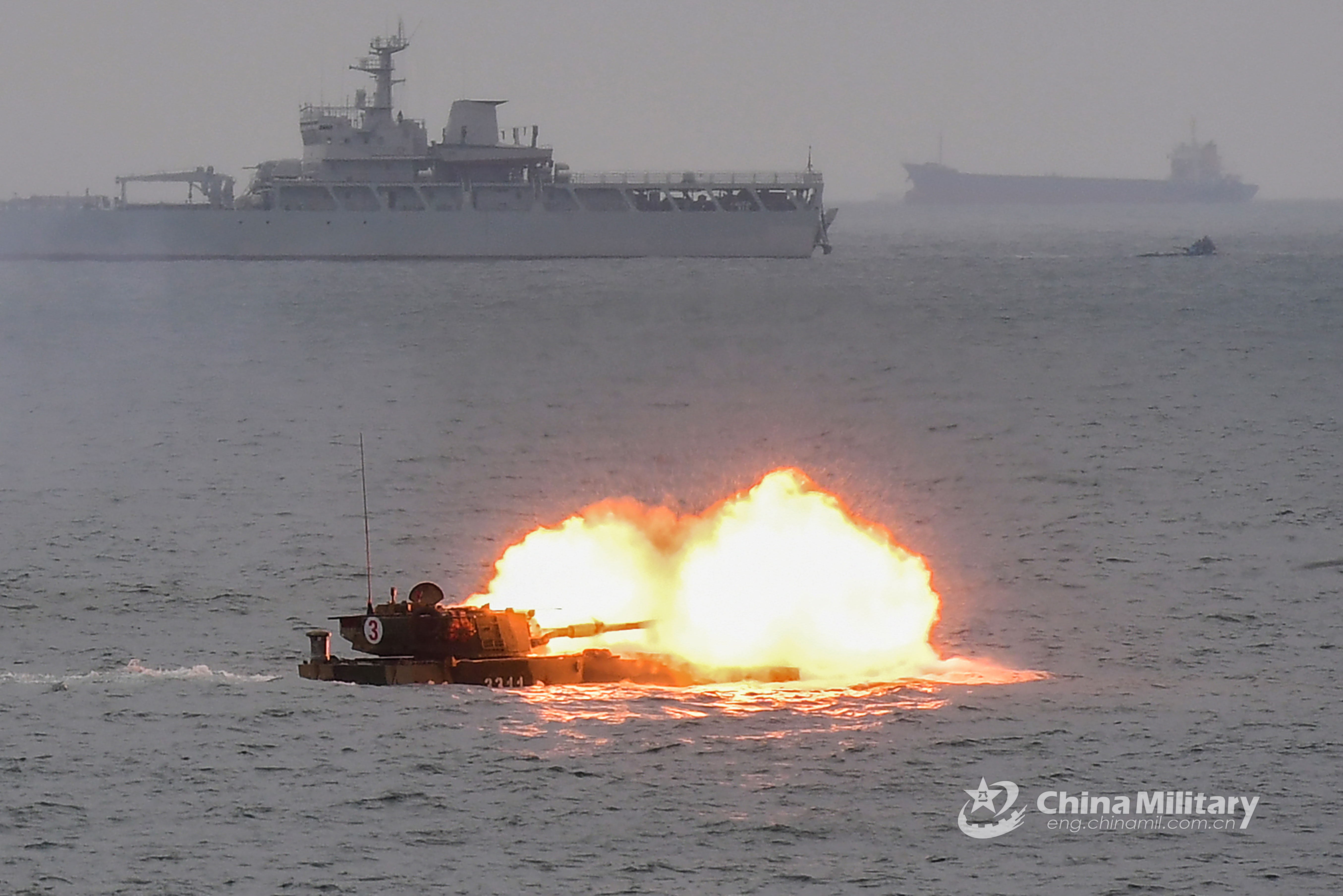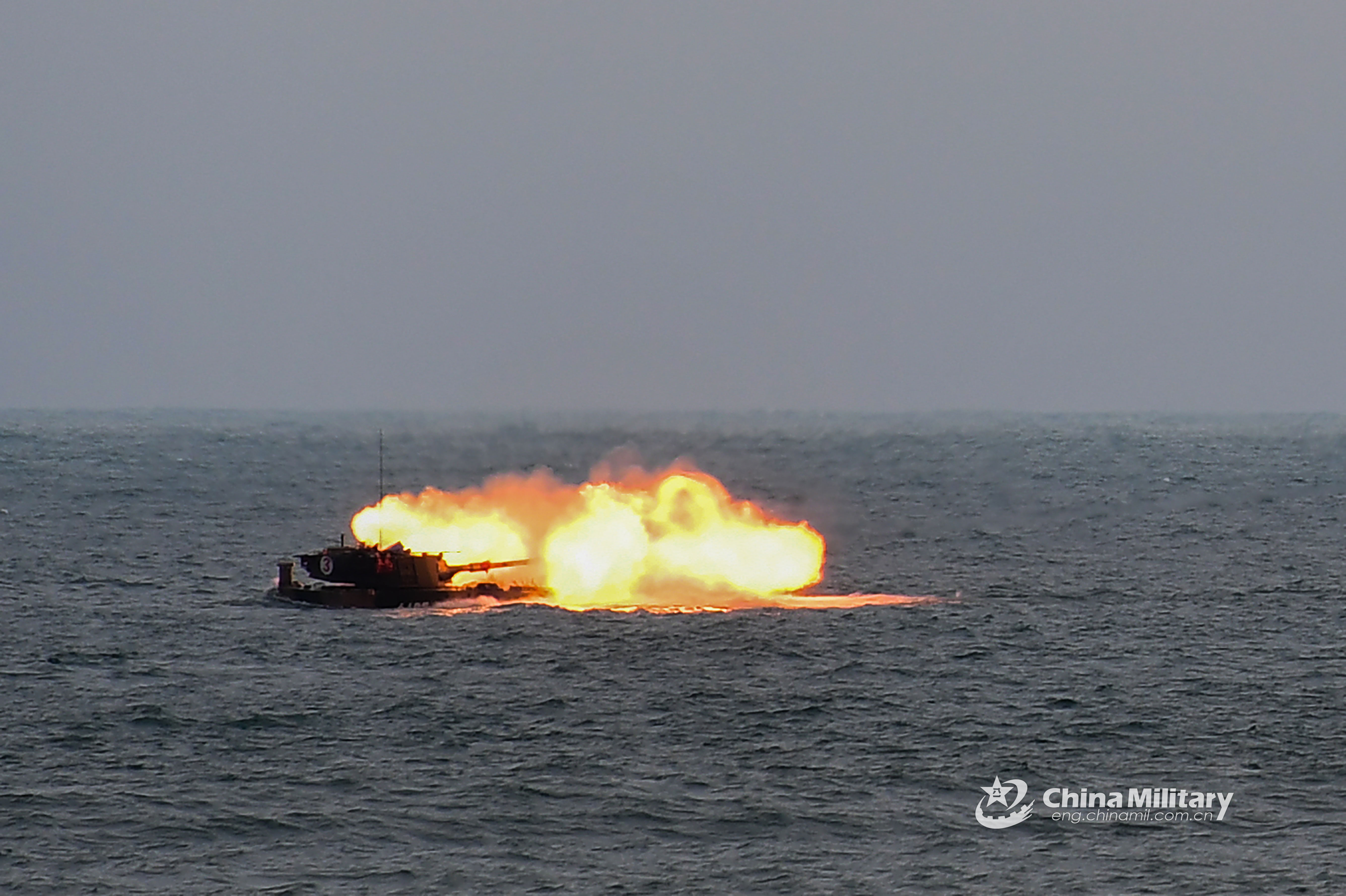 6月13日,陆军第73集团军某两栖合成旅在东海某海域组织海上实弹射击训练,锤炼官兵海域作战能力。(中国军网英文版/张腾 摄影报道)