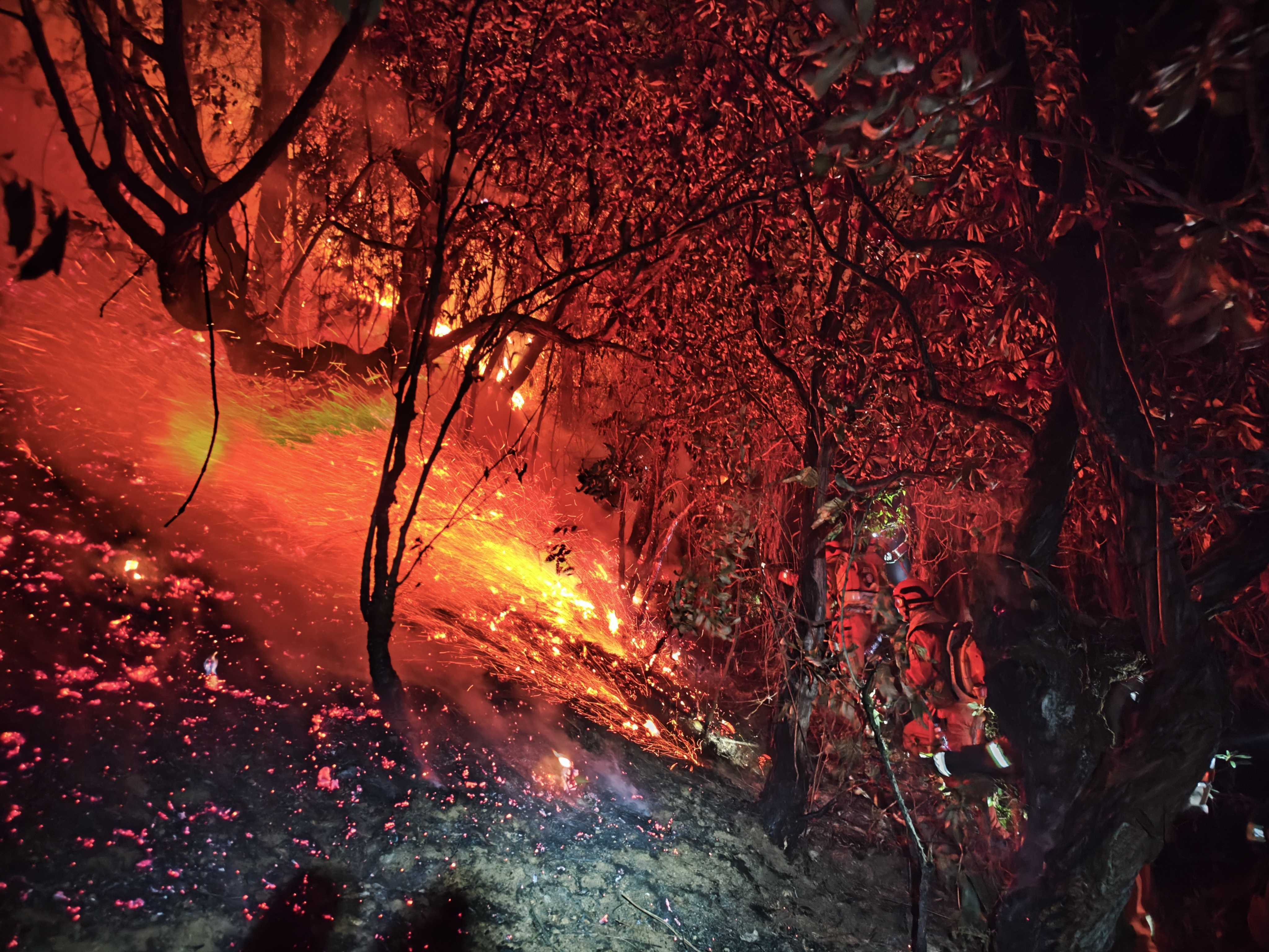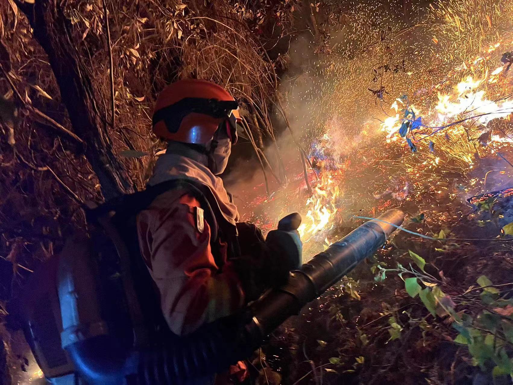南方航空护林总站1架直升机,及消防、武警、专业扑火队、干部民众等多方力量集结,协助森林消防队伍行动。目前,起火原因正在调查中。